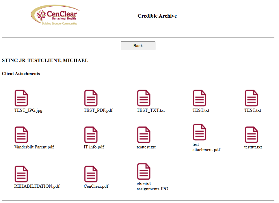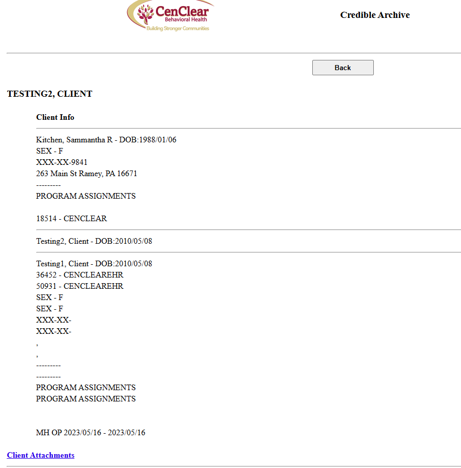 If you wish to see non-service attachments, you may go back to the client search, find the client and click on the client’s name. This will display client information, as well as a link for all client attachments: