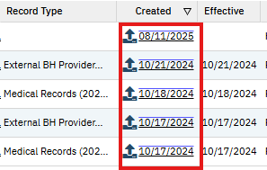 3.) Locate the desired file in the results list and click on the link in the Created Date column: