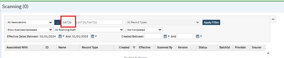 - Enter any additional filter information you require to find the file and click the Apply Filter button to the right