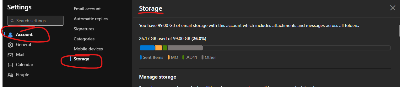 To view your Mailbox size in Outlook on the Web: