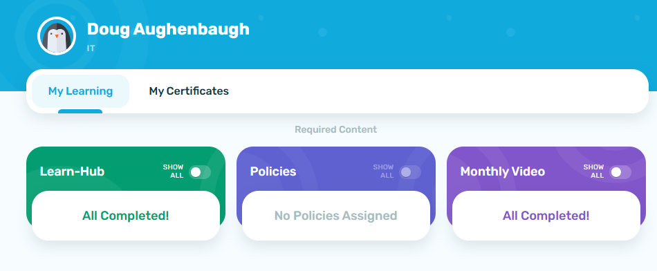 This will take you to the main page where all the required trainings and videos live. It will look like this